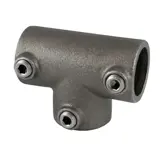The Interclamp® 104 Long Tee is a 90° joint, often used to join intermediate uprights to top rails on level sites. This key clamp / tube clamp can be used where through tube (horizontal in photo) has to be joined within the fitting. Where such a joint is not required, type 101 can often be used as an alternative.
