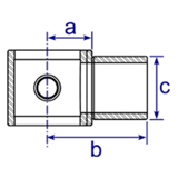 A versatile fitting, often used on slopes and staircases where the angle either varies or is unknown, and/or where there is a requirement for rails to be offset from uprights. Most commonly used with types 101 and 125 to mount sloping rails onto vertical uprights. The tube cannot be joined within the fitting.