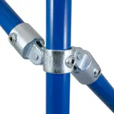 A versatile swivel fitting, useful for awkward applications where angles cannot be accommodated by adjustable angle fittings. The through tube (vertical in photo) cannot be joined within the fitting. The assembly is riveted together, although items can be supplied separately as 168M and 2 x 173F.
