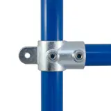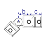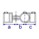 A versatile swivel fitting, often used for braces and where staircase middle rails join level sections. The through tube (vertical in photo) cannot be joined within the fitting. The assembly is riveted together, although items can be supplied separately as 174M and 173F.