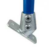 Base flange for sloping sites, adjustable from 30° to 45°. As the fixing holes in the base cannot be fixed in line with the applied load, it is only intended for light loads or structures which are sufficiently supported by virtue of their design. Where a greater load is required, type 132 is normally used, with the upright tube bent to the required angle.