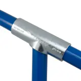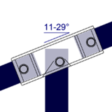 Adjustable for slopes from 11° to 29°, often used to join intermediate uprights to top rails and middle rails to end uprights. This Interclamp can be used where through tube (sloping in photo) has to be joined within the fitting. Type 253 may often be used as an alternative.