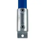 A palm-type fitting, often used to attach guardrail uprights to walls, staircases and ramps. In standard form, the tube cannot pass through the bottom of the fitting, although the fitting may be modified to accommodate this at extra cost.
