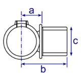 A versatile fitting, often used on slopes and staircases where the angle either varies or is unknown, and/or where there is a requirement for rails to be offset from uprights. Most commonly used with types 101 and 125 to mount sloping rails onto vertical uprights. The tube cannot be joined within the fitting.