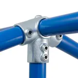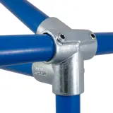Usually used to form roof structures in conjunction with type 191, with an angle of 27½°. The horizontal eaves tube running longitudinally with the roof may be joined within the fitting (there are two setscrews acting on this tube, which are obscured in the photo).